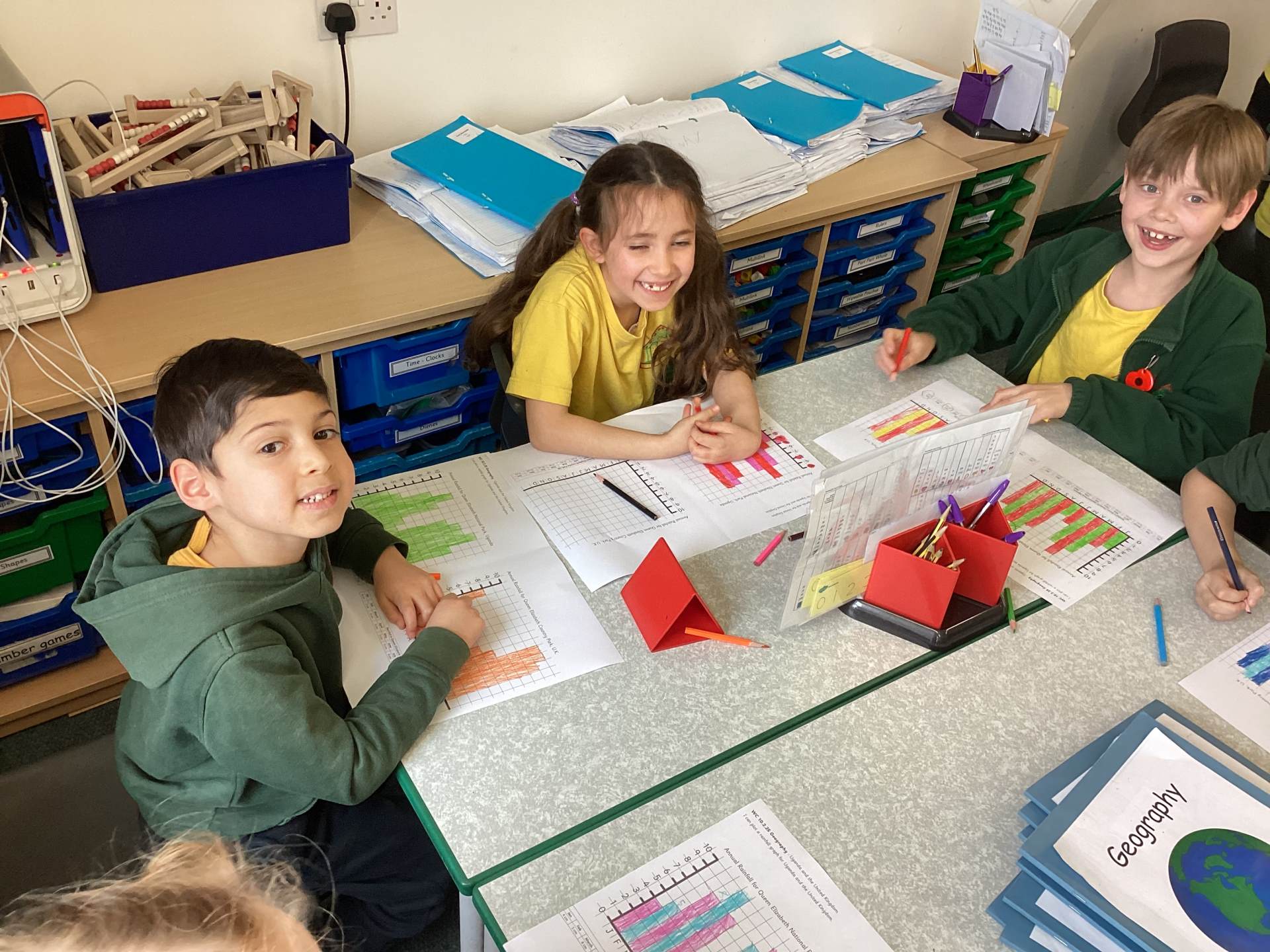 Our final Geography lesson saw us comparing rainfall and temperatures between the UK and Uganda. We were shocked at how much rainfall they get, but learnt that this is because they are near the Equator and therefore have a tropical climate!