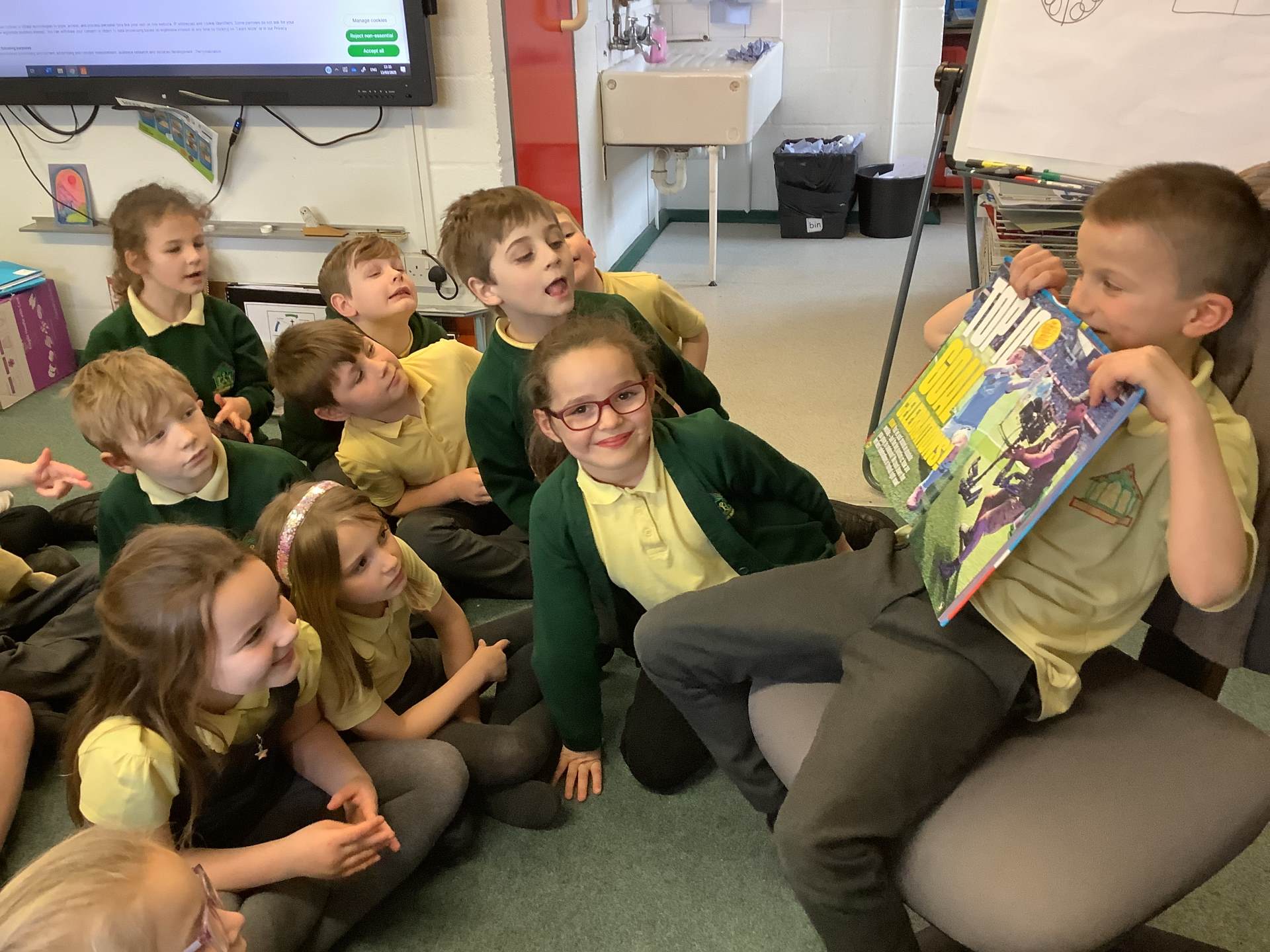 To support our poetry learning, we joined the Michael Rosen Huge Poetry Party on Thursday. Michael shared some of his poems about food and told us entertaining stories — we loved it!