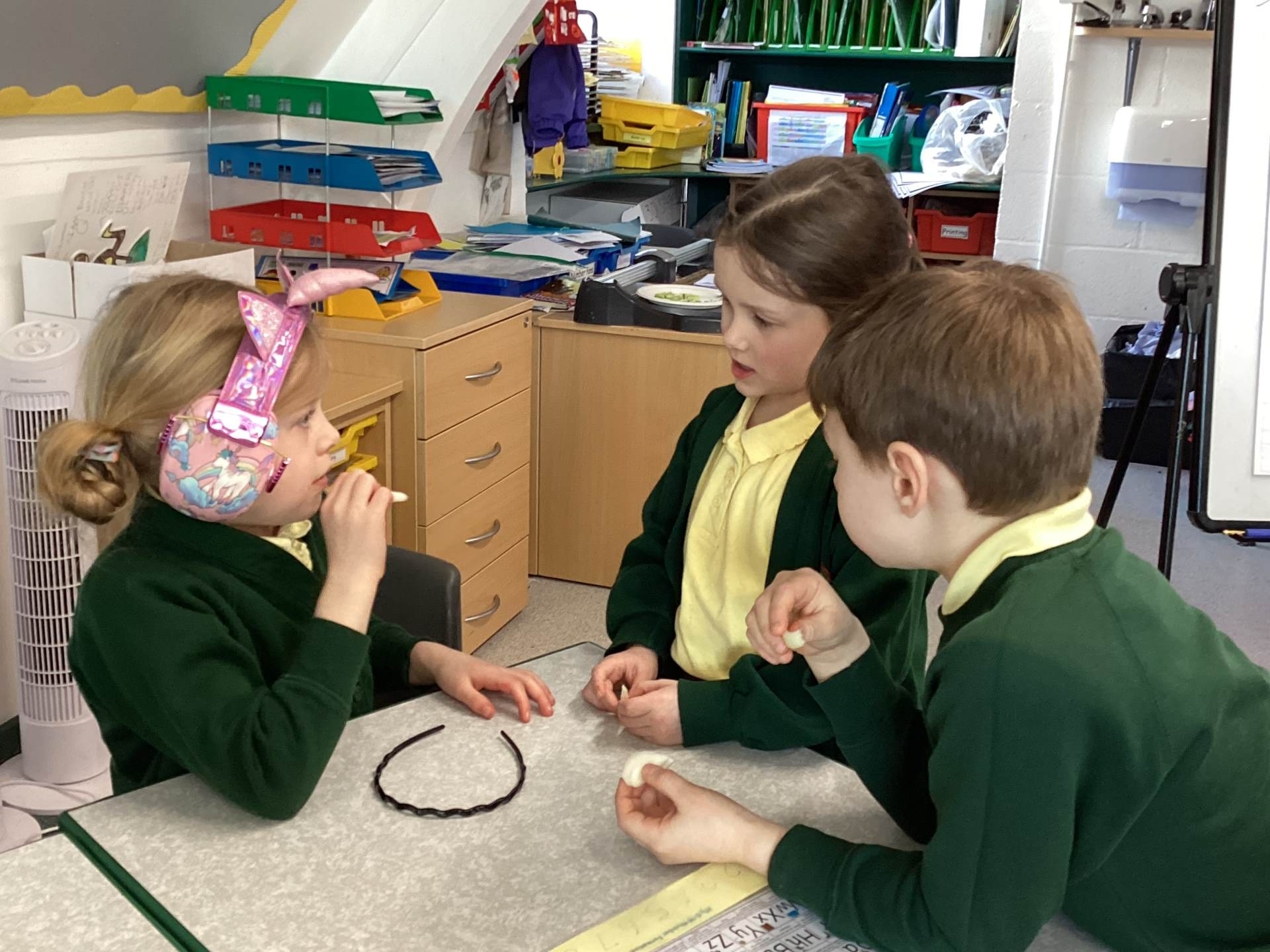 In Science we were exploring the differences between things that are living, dead and things that have never been alive. Sometimes it wasn’t always obvious eg. Did you know that hair is living when inside your head and in the hair follicle but as soon as it is external, it is dead? Do you know that plastic is made of oil? Oil is made from from tiny plants and animals such as algae and plankton which have become trapped in layers of sand and mud. So, plastic could be described as ‘once living’! Wow!