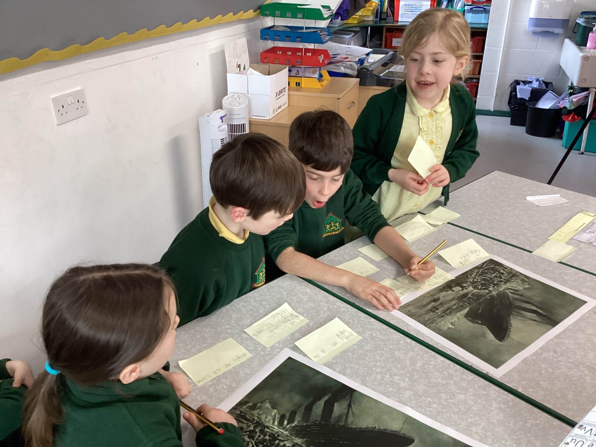 We were all VERY excited to start our new history topic on the TITANIC! The whole school probably heard our jubilant cries when our teacher did a slow reveal of the doomed liner. During the first lesson we looked at a painting of the ship as it was sinking and talked about what we could see. We learned new vocabulary such as liner, life boat and maiden voyage.
