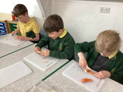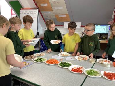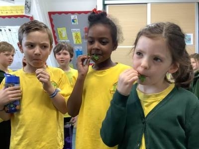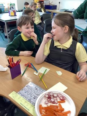 We ended the week with DT which was great fun because we had to taste test some vegetables. Some we loved, like pepper and carrot, but some we didn't like too much like radish and onion. Our favourite was cucumber.