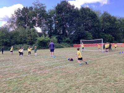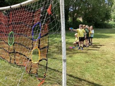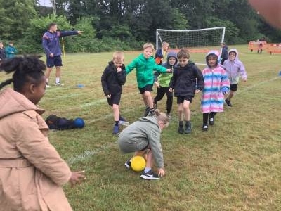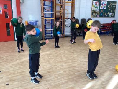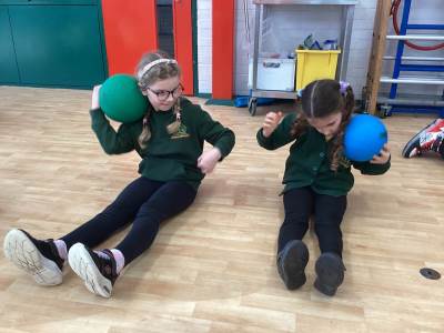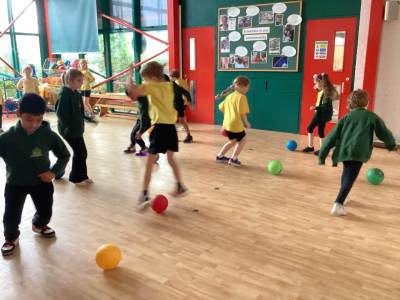 In PE we practiced our ball skills. We needed to maintain control of the ball at all times (which was tricky for some of us!) whilst moving the ball in different directions. Our movements needed to be smooth and fluent.