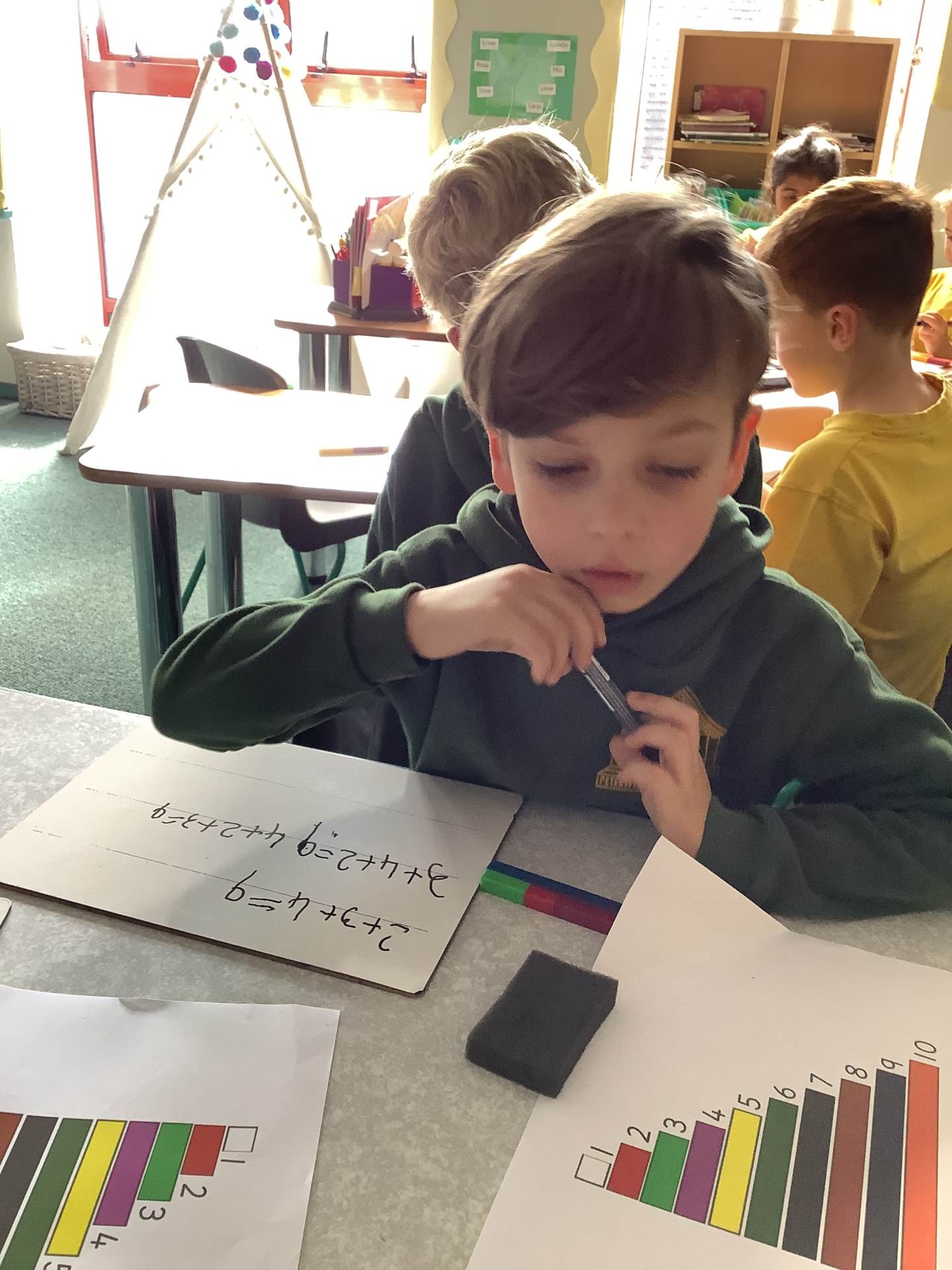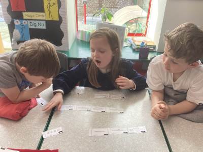 In Maths, the children explored how to add three numbers in different ways. Using tens frames, Numicon and Cuisenaire rods, they discovered that numbers can be added in any order and that spotting doubles and number bonds can make calculations quicker and easier. We talked about which strategies were the most efficient and why. The children enjoyed solving lots of practical problems and explaining how they had worked them out.
