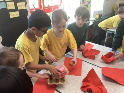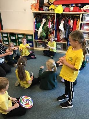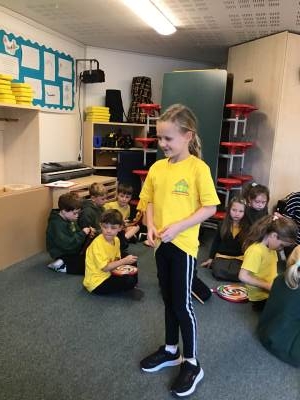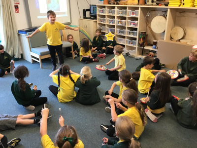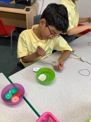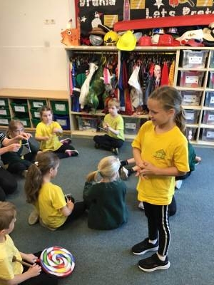 In Music we began our new topic ‘Man on the Moon’. We played a fun game where we chanted a rhyme whilst tapping a steady beat. We then explored different vocal timbres by making up funny voices for the aliens - some were high, some low, some squeaky.