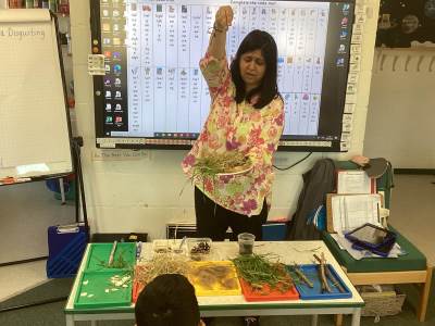 We sorted pictures into two different groups: living / not living. Then we did the same activity with three groups: living / dead / never been alive. There were quite a few challenges and discrepancies. For example, hair is living when inside the head and in the hair follicle, but once it is external, it is dead. We also discussed plastic—made from oil (which comes from tiny plants and animals, such as algae and plankton that get trapped in layers of sand and mud).