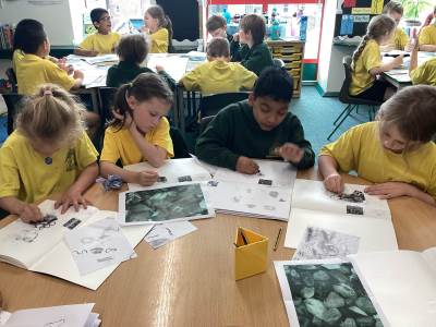 In Science, our focus has been on life cycles in the topic Animals Including Humans. The children sequenced the stages of frogs, butterflies, chickens and humans, using the correct scientific vocabulary. They also investigated the basic needs for survival, finding out that all living things need food, water and air to stay alive. The children asked thoughtful questions and used iPads to research fascinating facts about different animals.