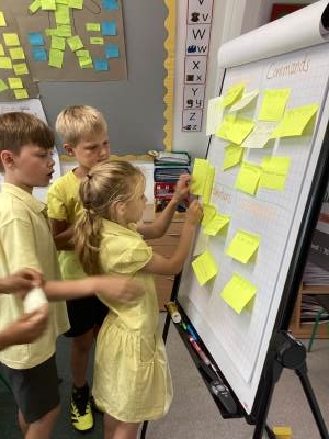 In Computing, we learned that computers follow instructions. We discovered that these instructions need to be clear and concise. We had great fun giving instructions to our partners, who pretended to be robots in the playground!