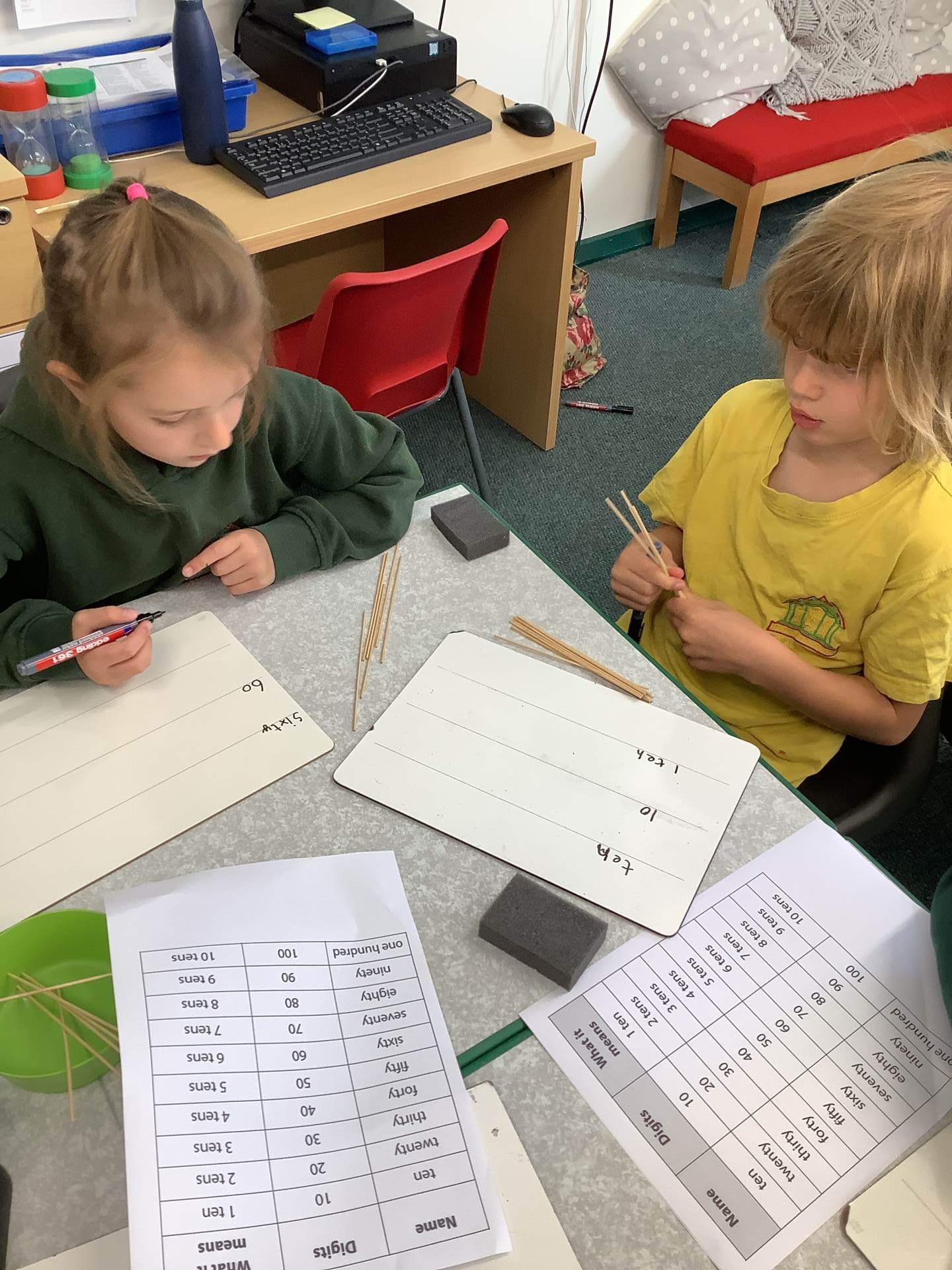 In Maths we have been partitioning 2 digit numbers and adding and subtracting using dienes to support our thinking.