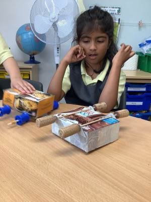 In DT, the children began exploring wheels and axles. They experimented with fixed and free axles using construction kits, discovering how different mechanisms work. They also learned and used technical vocabulary such as chassis, axle and axle holder. This practical experience will help them when they design and build their own racing vehicles for the exciting Downhill Dash, which they are already looking forward to.