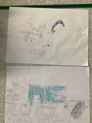 This week, we designed our own wheeled vehicle in DT, labelling the different parts. We had to decide what we were planning to use for our wheels, axles and chassis, as well as what the vehicle would look like. We also had to decide whether we wanted our vehicle to have a fixed or free axle. We used what we had learnt from last week's investigation session to help our decision making.