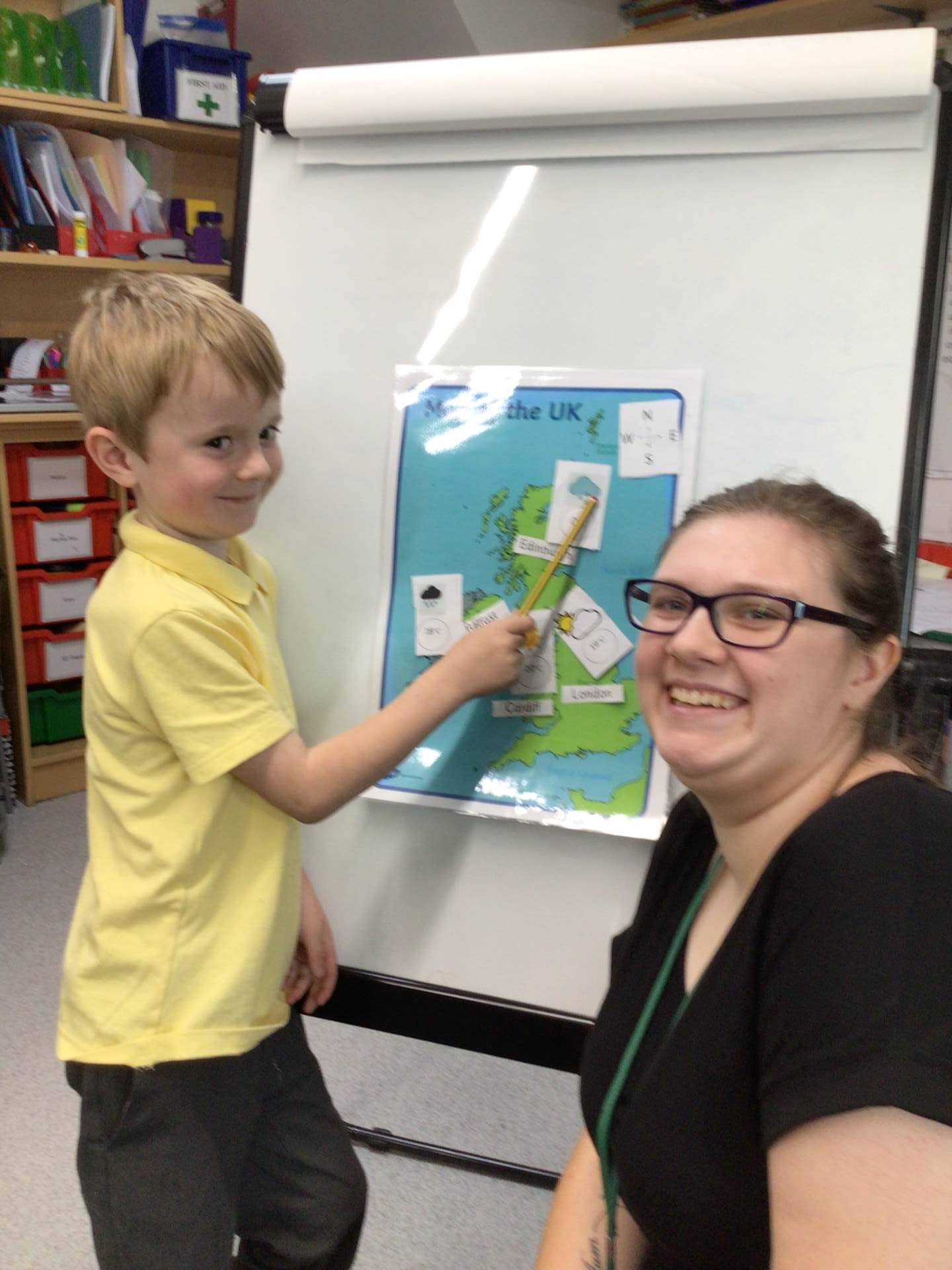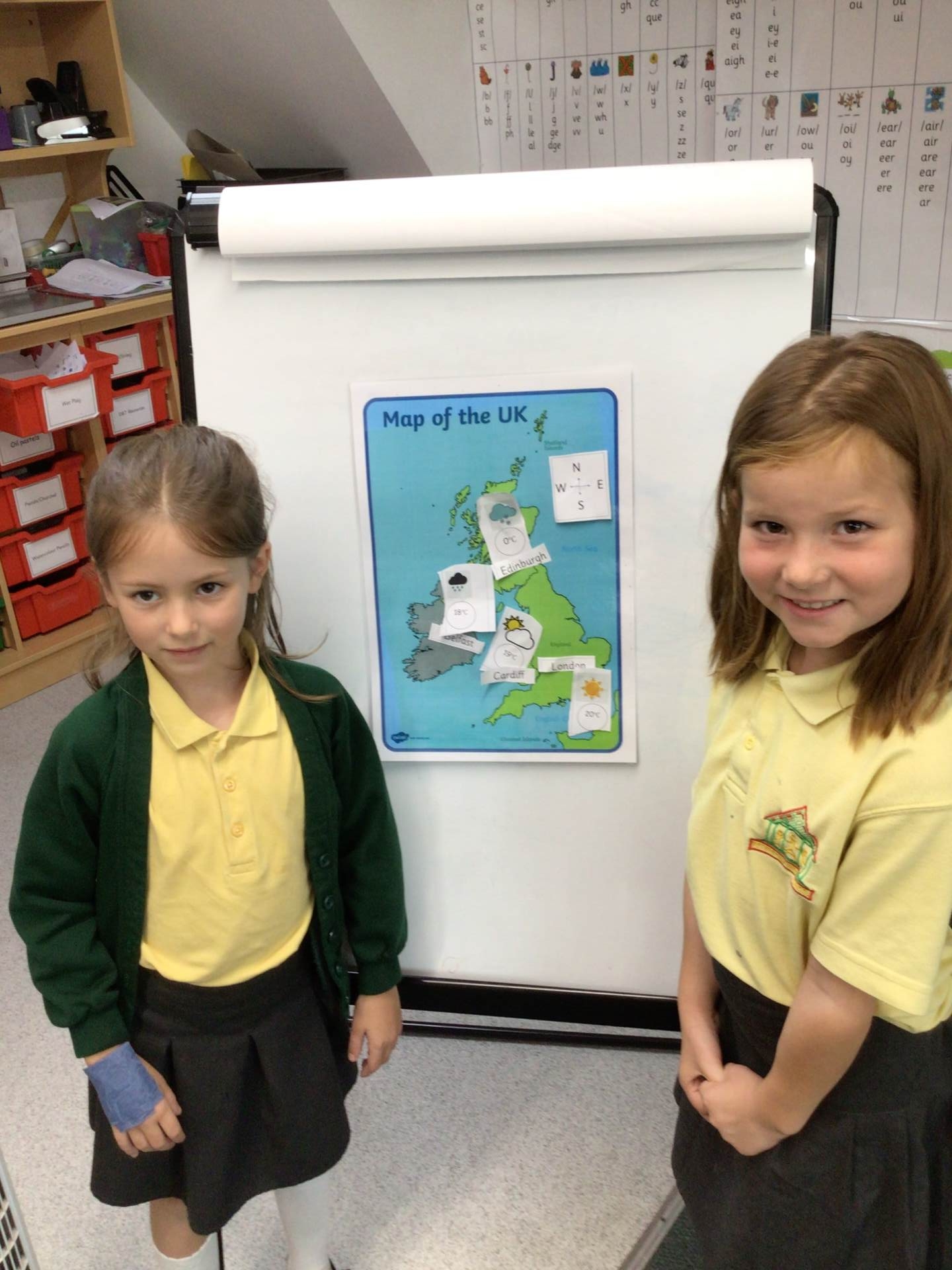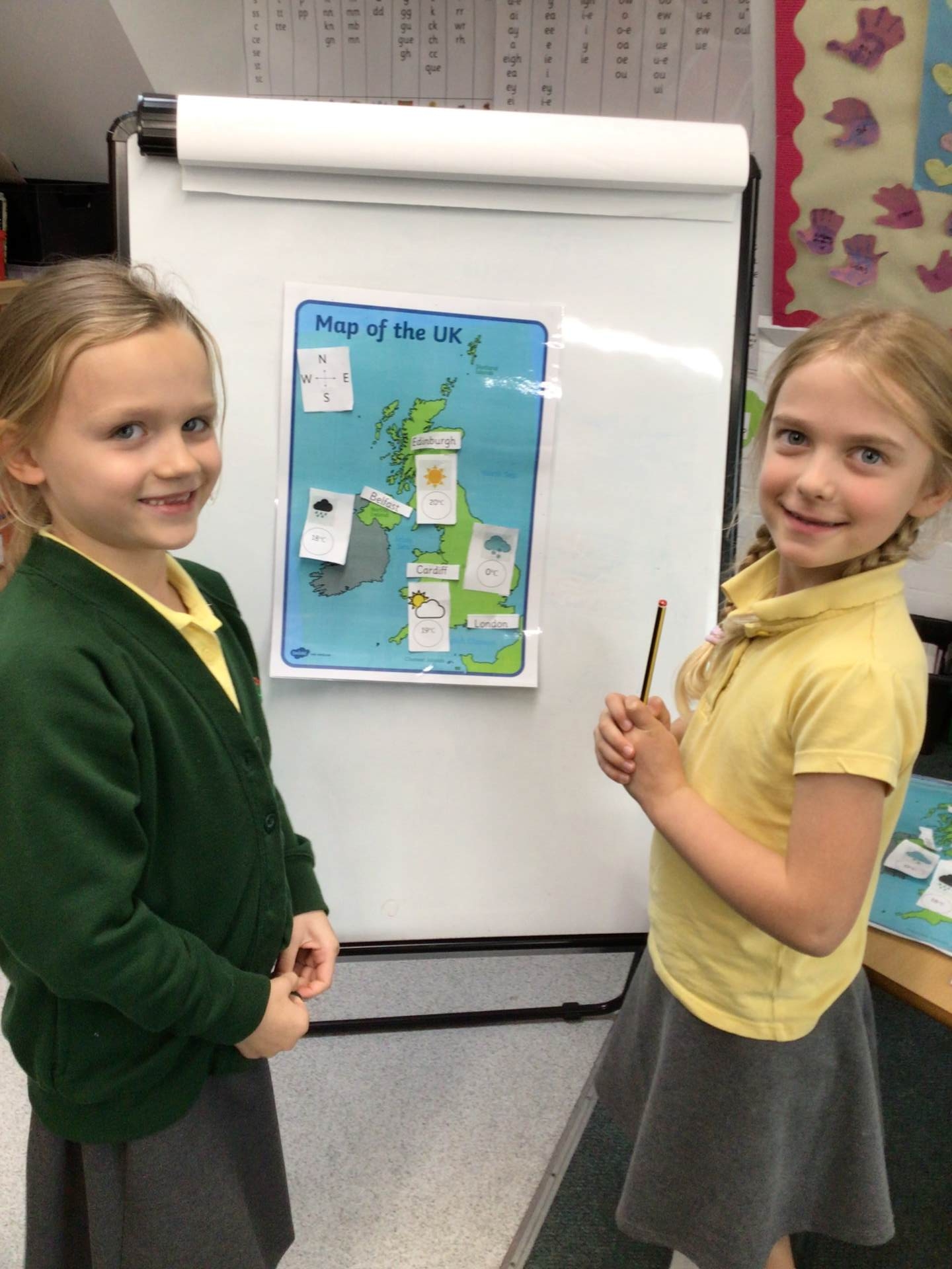 In Geography we became little meteorologists! We labelled the cities of the four countries in the UK on a map and then decided what the weather might be like there. We then performed a weather forecast to our friends. We used geographical vocabulary, such as north, south, east and west, we named the capital cities and used vocabulary related to the weather.