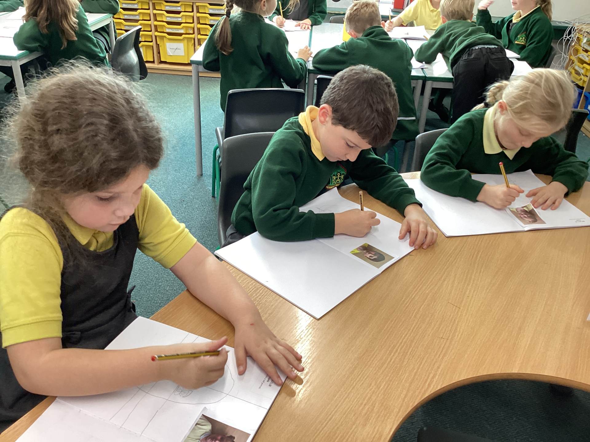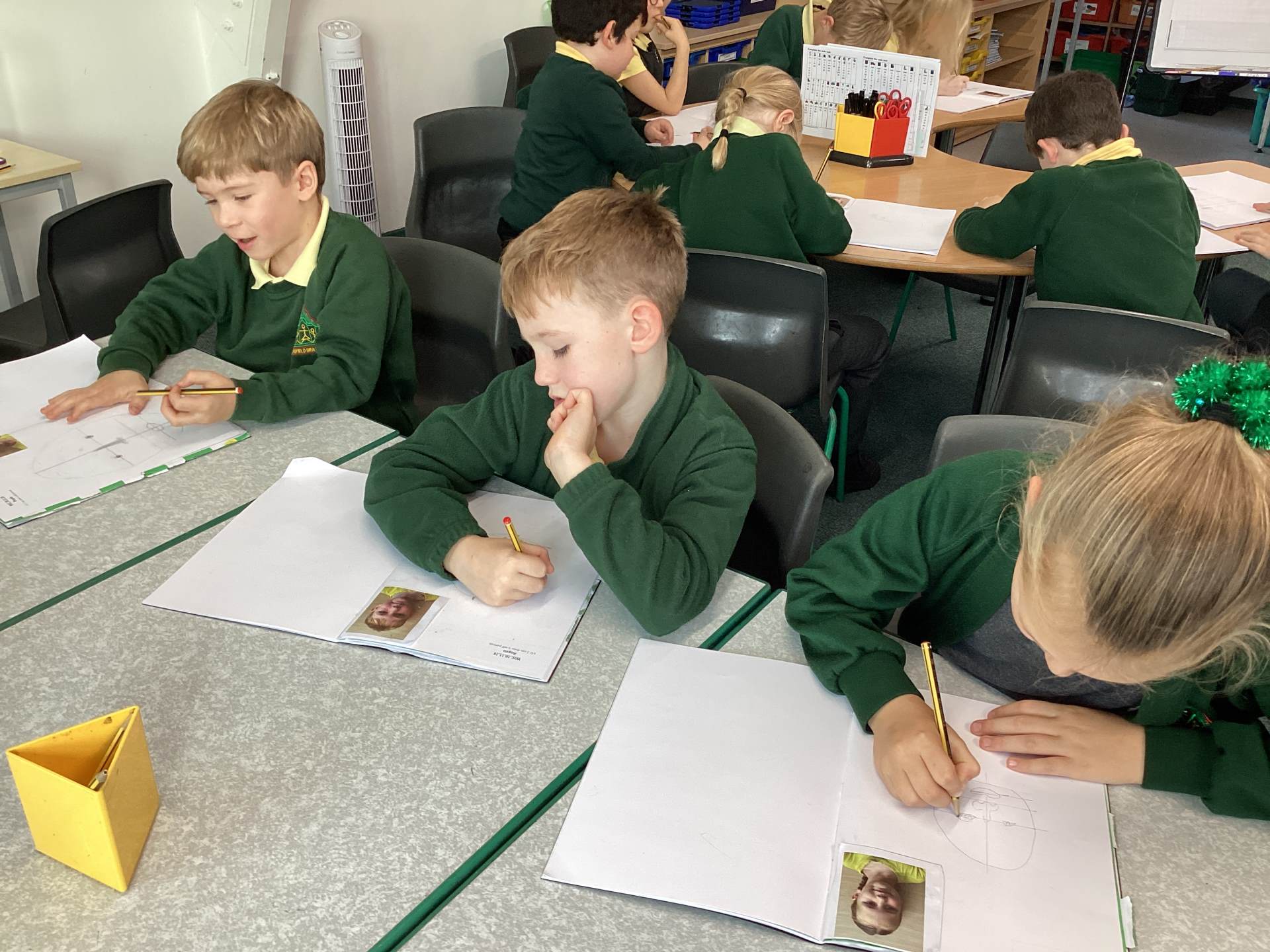 In Art, we learnt how to draw self-portraits. We had to concentrate carefully and follow instructions closely. It was a real challenge, but everyone persevered and produced amazing artwork.