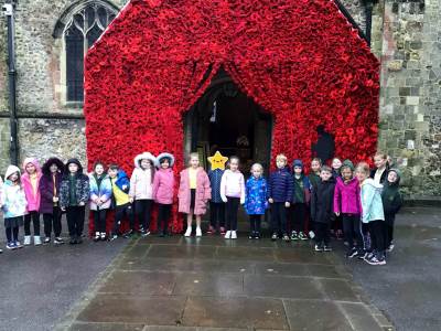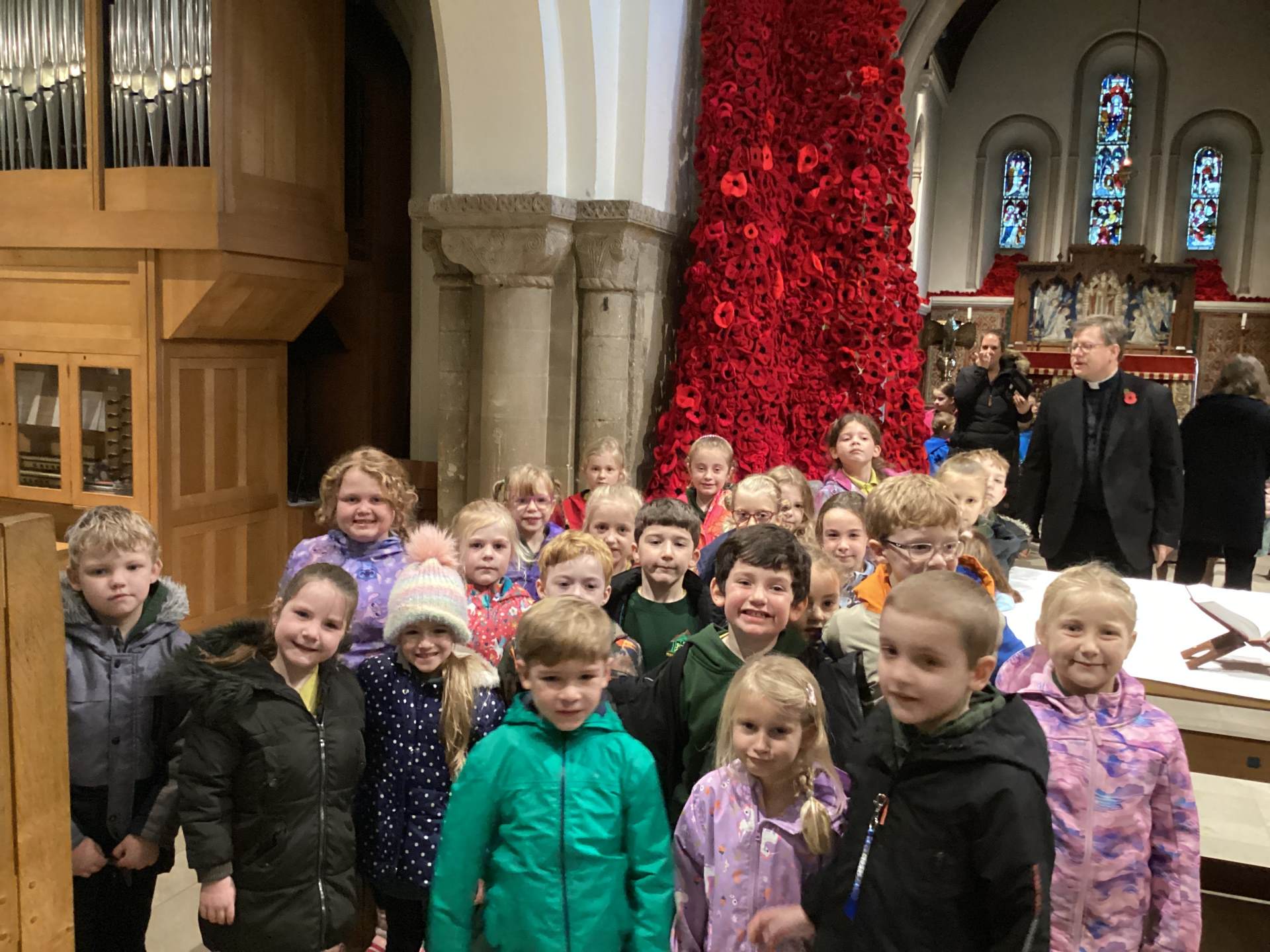 Finally, we enjoyed visiting St Peter’s Church to see the incredible display of knitted poppies. Rev Will explained the meaning behind the poppies, helping us reflect further on remembrance.